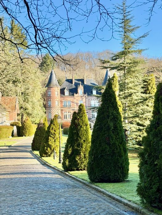 Surrounding it are 30 hectares of landscaped gardens and preserved nature, a verdant setting where the seasons unfold like a ballerina crossing the stage in an ethereal movement. Pathways trace meditative walks, clearings create moments of openness, and the entire estate seems suspended between dream and reality.